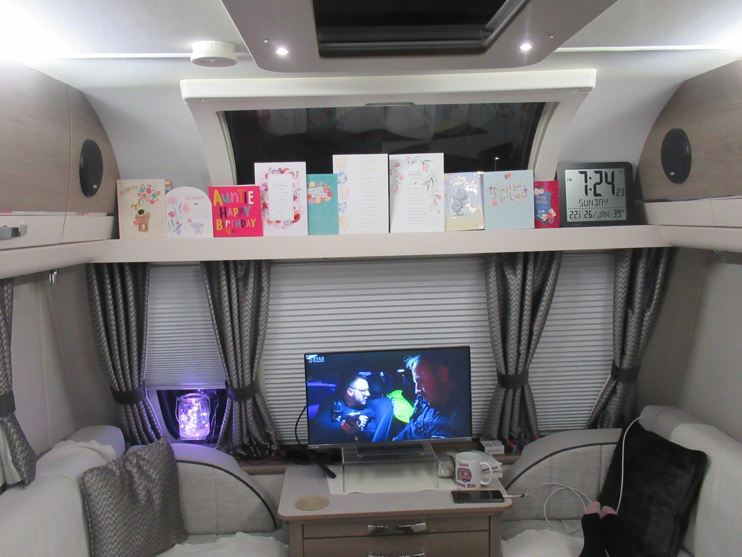 Sun: A day of relax, which this week is all about really. We enjoyed breakfast, apart from the eggs which were very white and brittle and then lounged about all day. A lot cooler today, but inside the ‘van it’s not a problem!