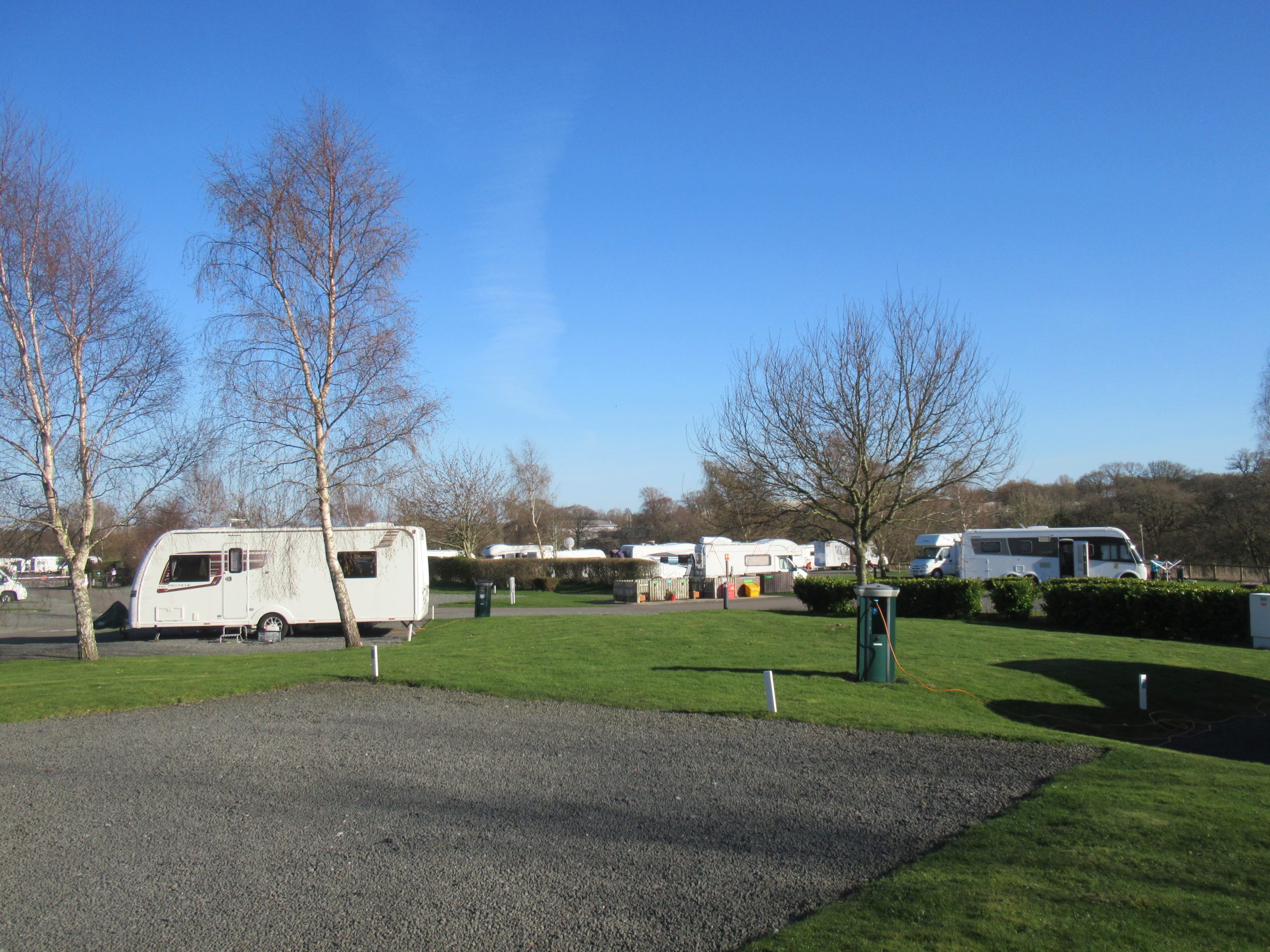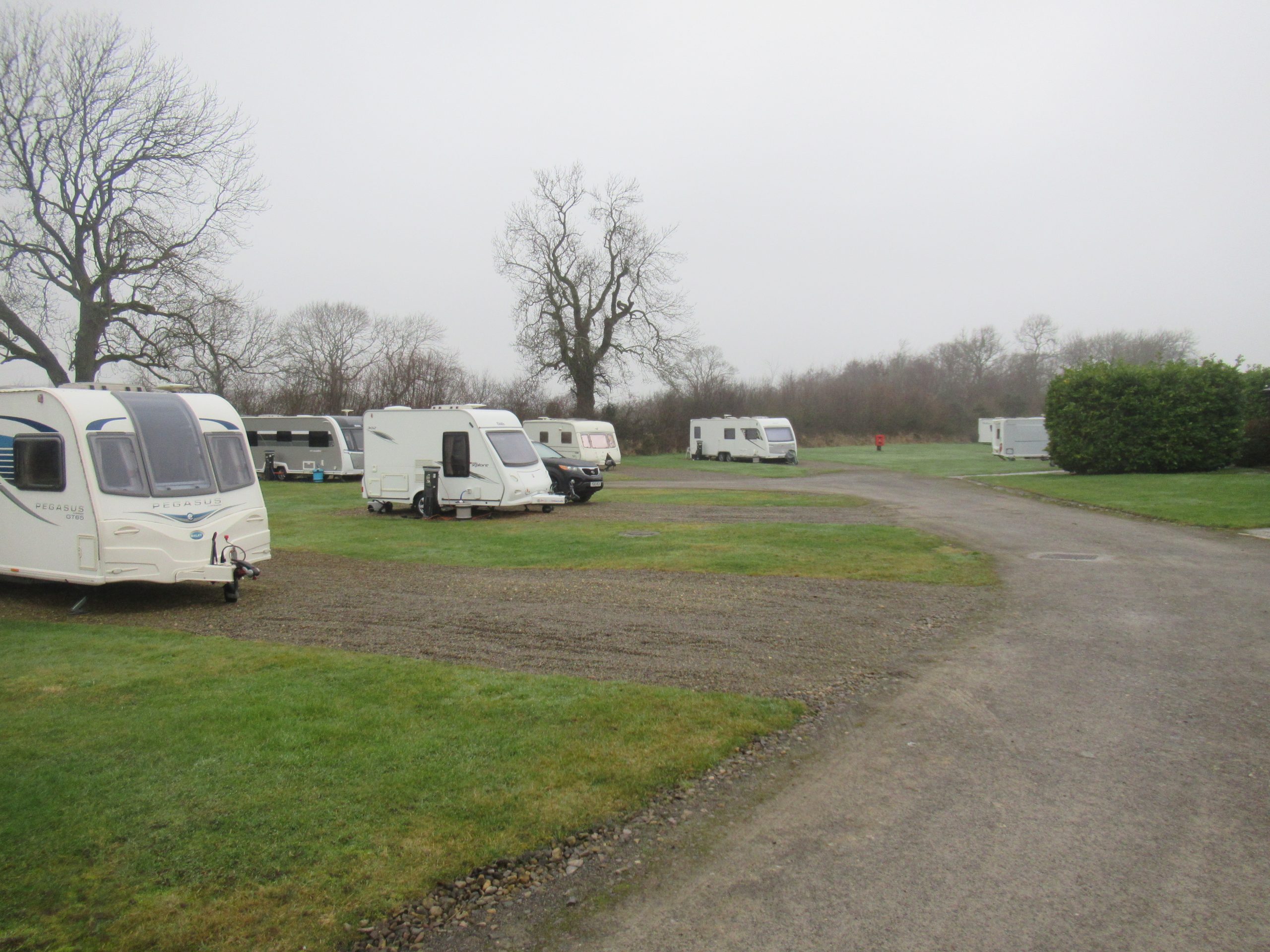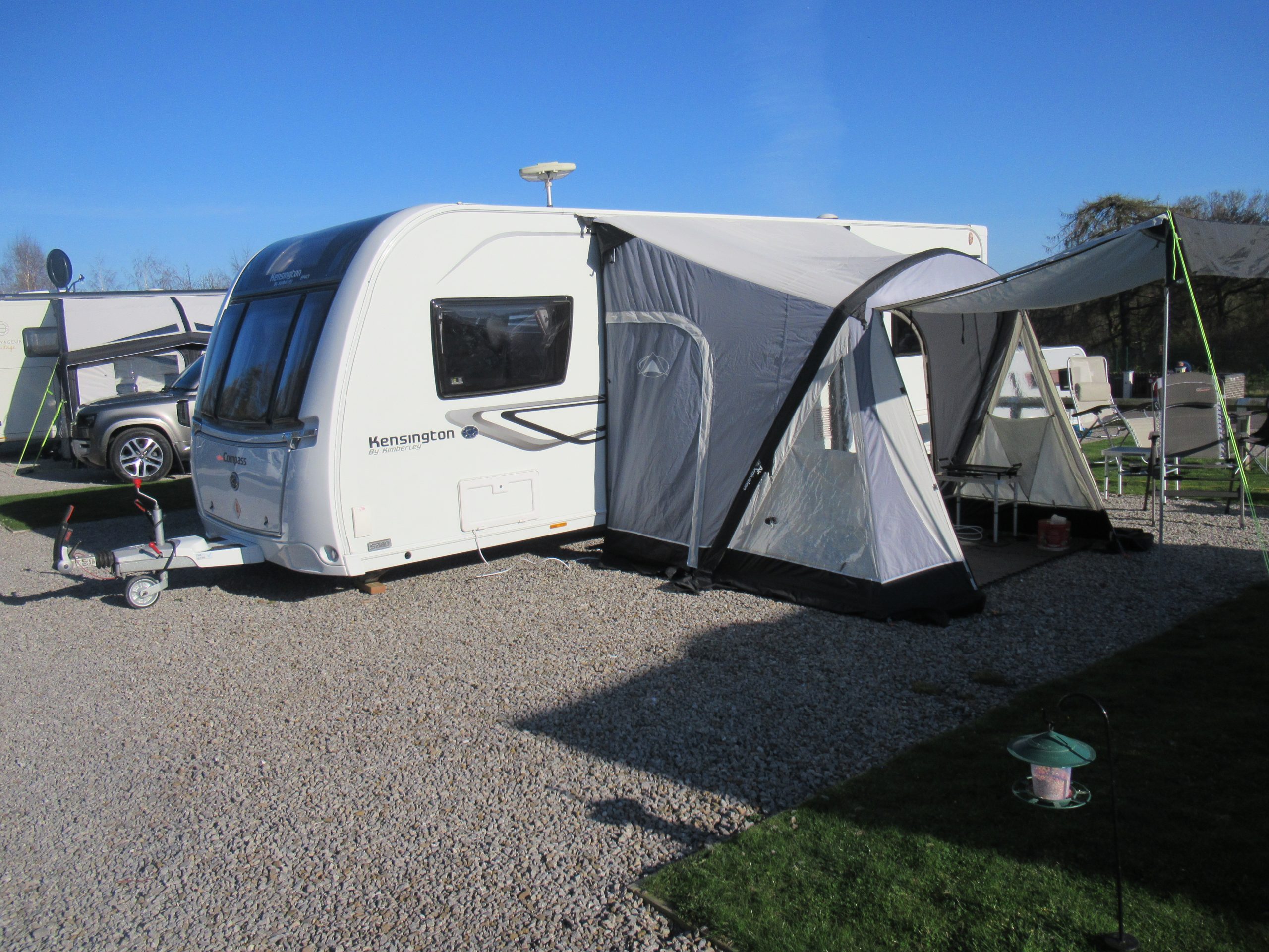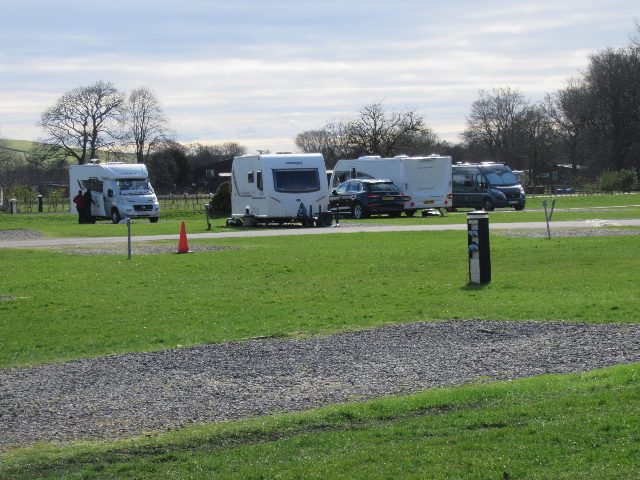 Sat: An easy start, with the site only being just ‘down the road’. We picked up the ‘van from storage, following a discussion with a motorhomer who were having battery issues and then sat in a queue on the A1 for over an hour, due to an accident that had occurred earlier in the morning. We were thrown off the A1 and onto the A6055, which was okay as this was the road we needed to get to our rest stop, aka Leeming Bar. Finally getting there, we ‘enjoyed’ a lukewarm coffee and then began our final short leg to the site itself. This involved a journey on the A61 Ripon road again, but now the road with the resurfacing finished, it was a good leg, albeit a bit twisty 🙂 The final approach along the B6165 Ripley Road was a little tight in places, but perfectly manageable. Upon arrival we duly booked in and were greeted with 3 pitches available, but as it turns out actually only 2! Any remarks about touring diminishing in popularity is far from the truth. We are here in the depths of winter approaching and the site is basically full! We bagged our pitch and set up as usual. We were behind a few trees, so the bird feeder should get used.