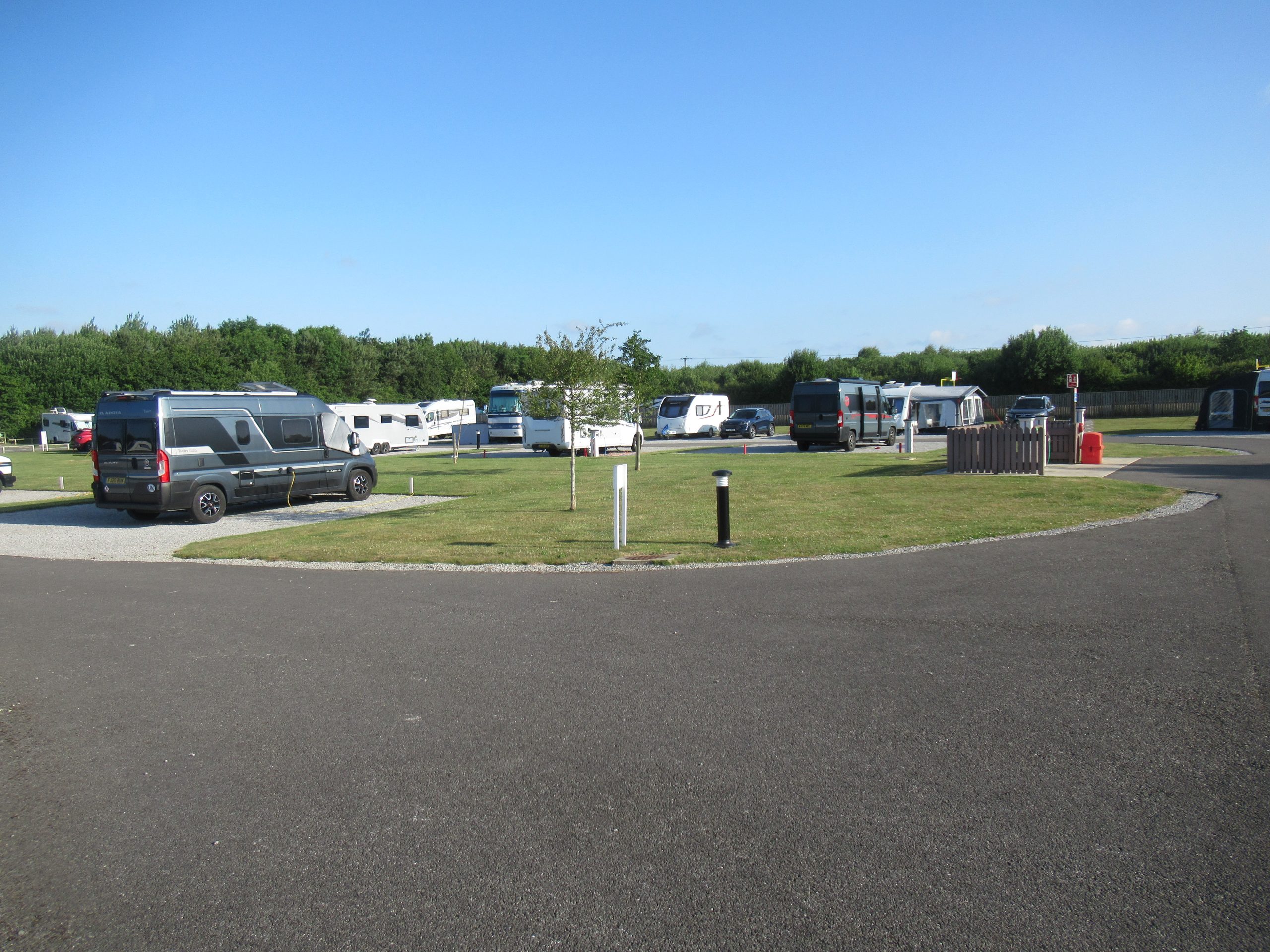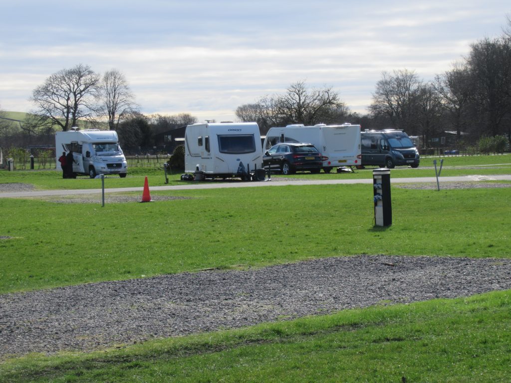 Thu: Not feeling to good, neither of us – so we stayed in all day. I had planned a walk/cycle around Nidd Gorge, but feeling under the weather and the weather being even worse, we decided to give it a miss. This left to us our devices inside the ‘van, which is always nice. Now time to report on the signals here. TV is very good, despite only getting a modest score with the CAMC. Maybe we’ve just got a lucky pitch! EE & Vodafone signal is poor, for the internet I’m getting: 0.2Mb down and 0.3 Mb up – so things are a little slow, manageable, but slow. Signal is showing 5G with 2 bars, but the speeds don’t reflect that. Shame, as with the site being open all year, it could easily become a favourite. But with the internet being very important, I’d be a little reluctant to return.